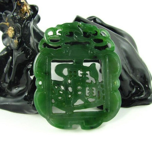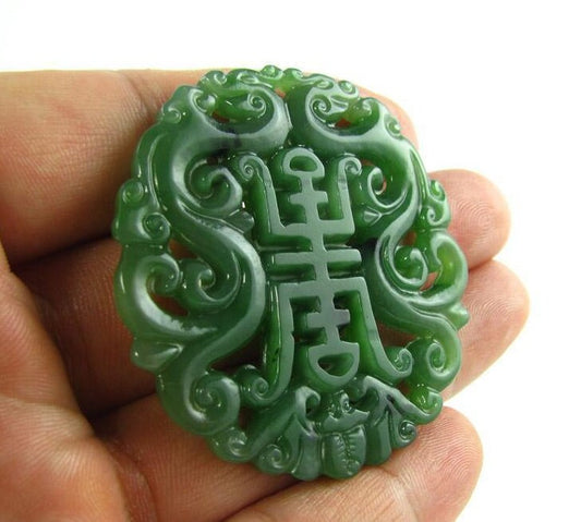 Green Nephrite Hollow Pendant NZ Greenstone jasper Pounamu Children Canadian jade Gemstones grüner Beads яшма Chinese Lady Necklace 双龙戏珠