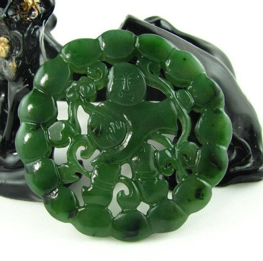 Green Nephrite Hollow Pendant NZ Greenstone jasper Pounamu Children Canadian jade Gemstones grüner Beads яшма Chinese Lady Necklace 招财进宝
