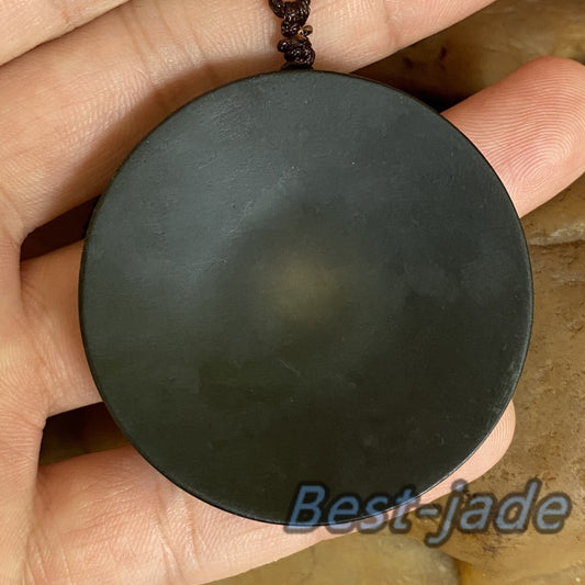 Natural Black Nephrite Jade Pendant Dull polishing Round Disc Necklace Australian jade
